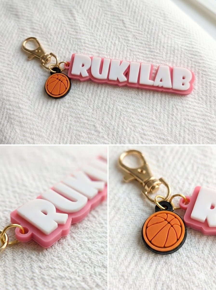 名前・チーム名・推し文字などを、くっきり存在感あるキーホルダーに仕上げます。